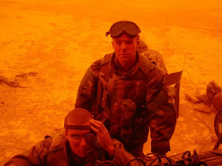 Receiving and coordinating fire direction communications during a sandstorm in Iraq (2003).